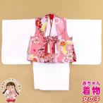 初節句 女の子 着物 ベビー被布 赤ちゃんの被布と着物セット 合繊「白×ピンク 鞠」HFG097